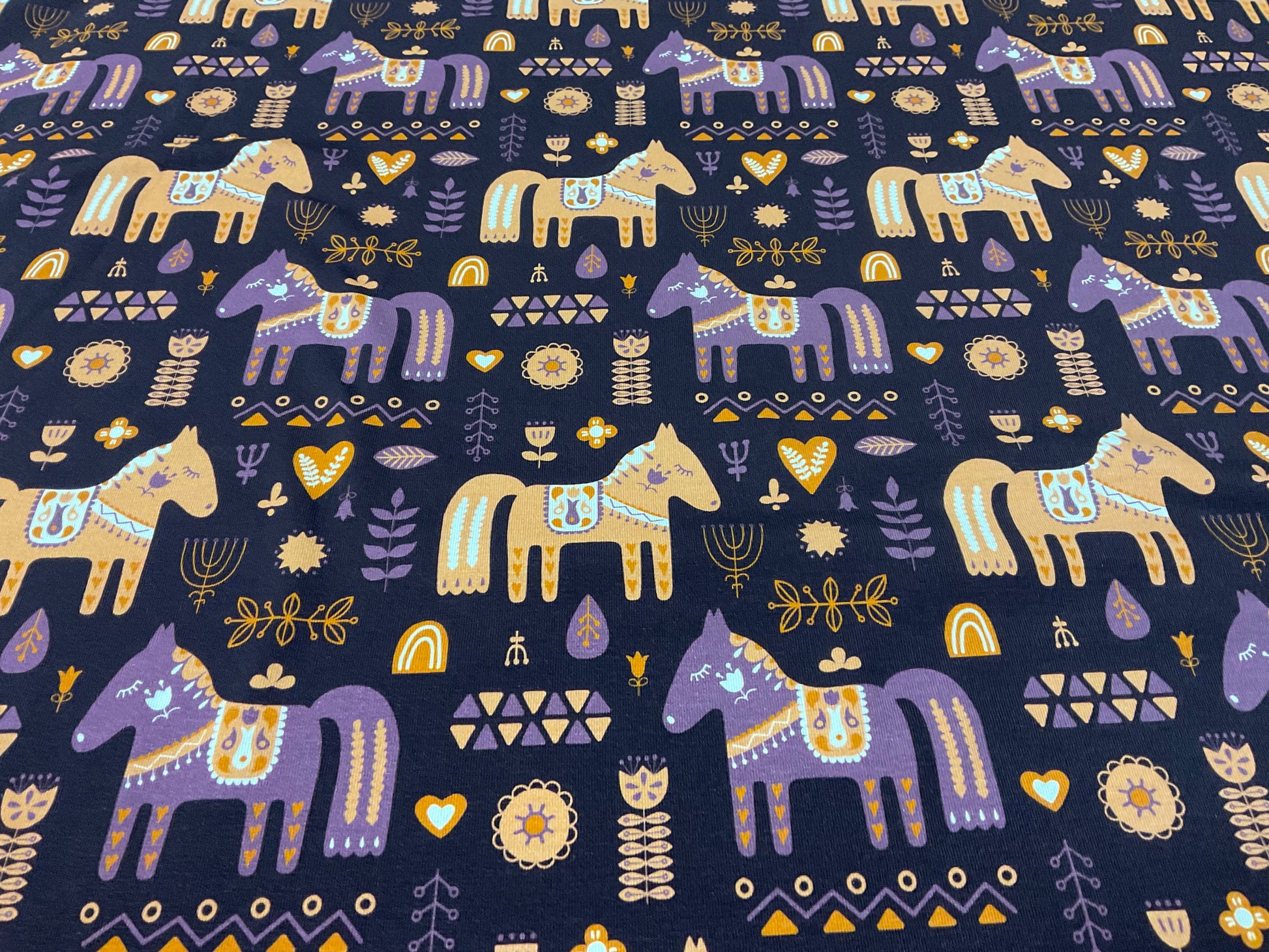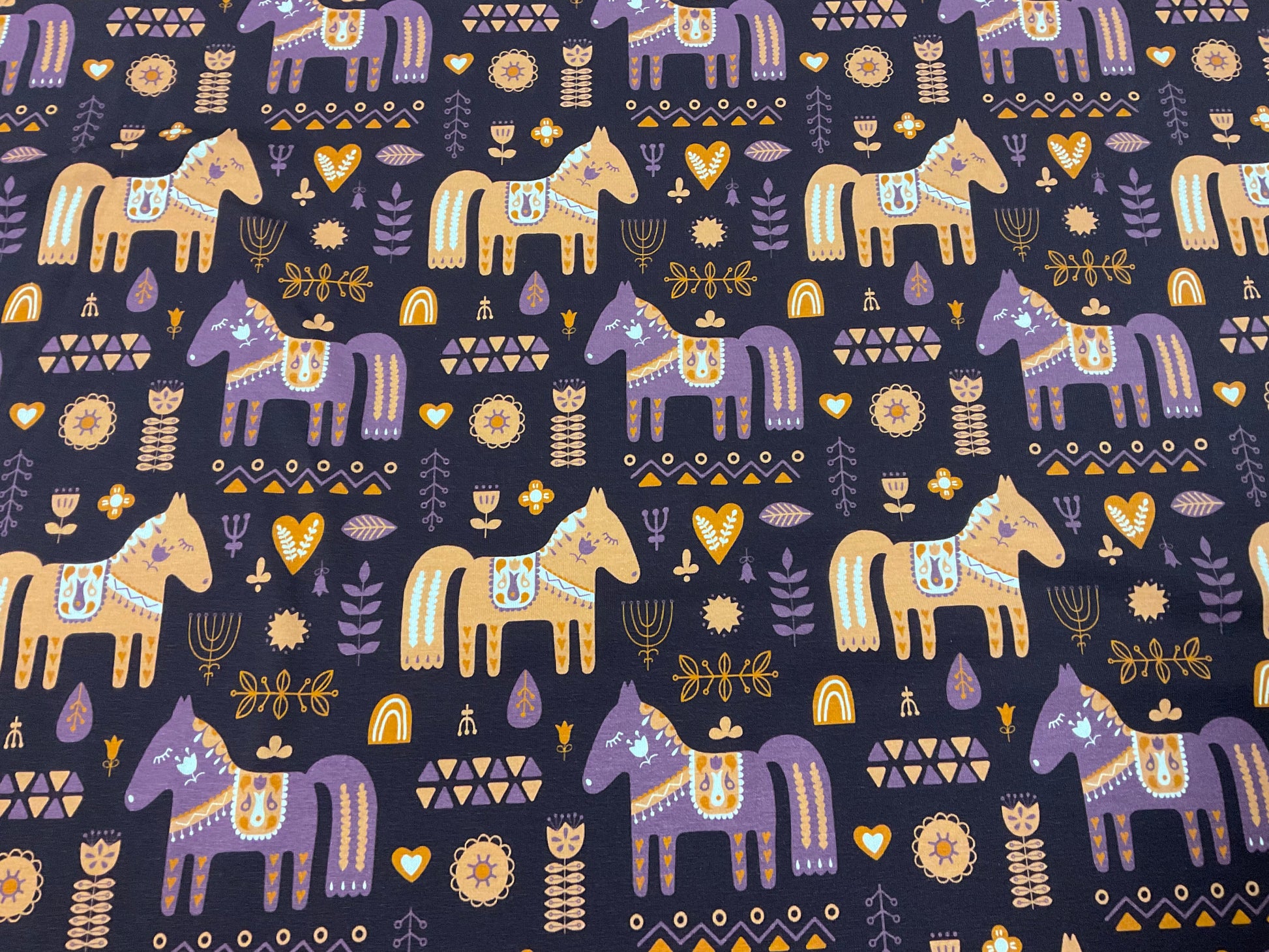 Baumwoll-Jersey, Swafing, Dala Pferde, Lila
